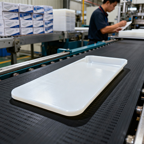 Materialen gebruiken PP van voedingskwaliteit (bijv. PP R370Y) of HDPE (bijv. HDPE 5000S), gecertificeerd door FDA en GB 4806.7-2016, met migratie ≤5 mg/kg;